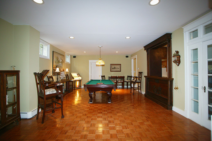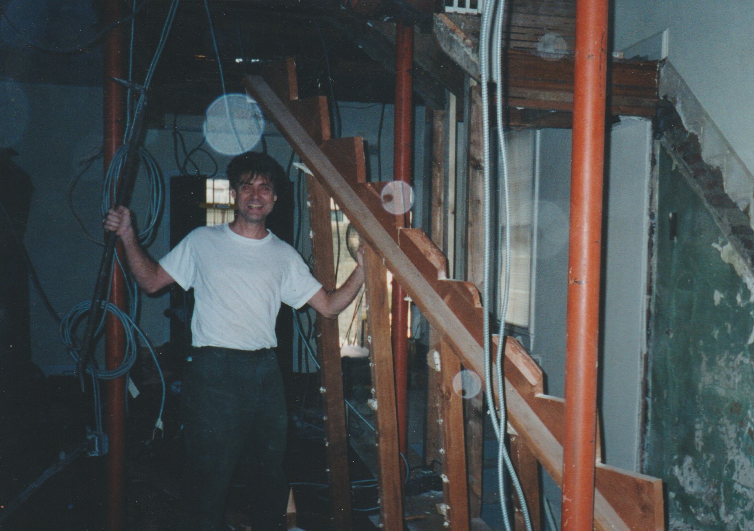 | When the house was turned into a church in the 1970's, all the woodwork including the hardwood foors was removed. The mouldings were reproduced using samples from the remaining woodwork on the second floor. When this photo was taken, the stairway was still missing the ballasters. The entire set of steps between the first and second floors was rebuilt. |